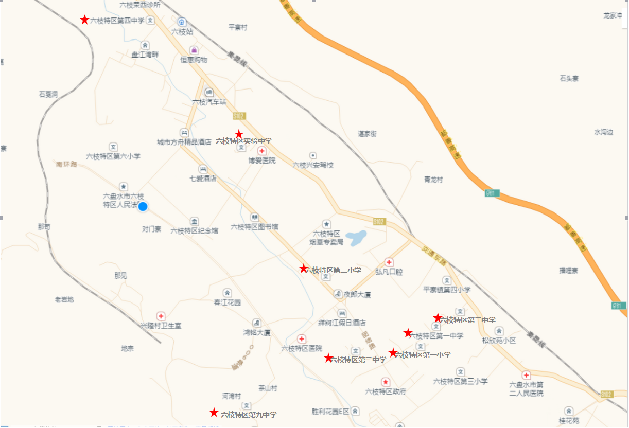 六枝特区2016年第一批面向社会公开招聘事业单位工作人员笔试考点分布示意图