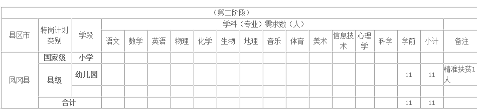 凤冈县2016年农村义务教育阶段学校教师特设岗位计划学科教师分配表 (第二阶段)