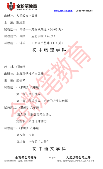 贵阳市2015年春季公开招聘中小学、幼儿园试讲课题公示