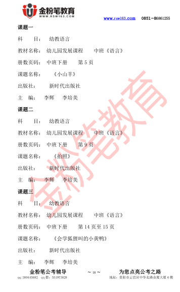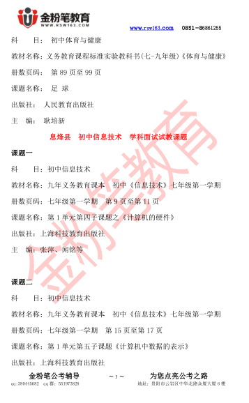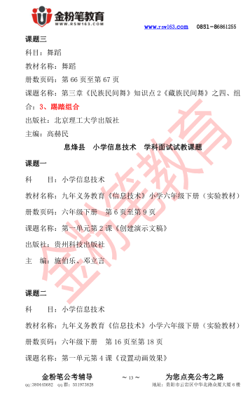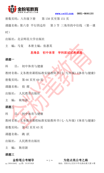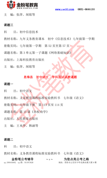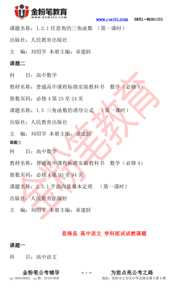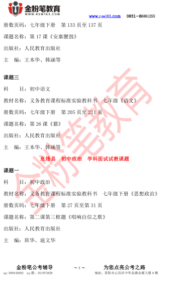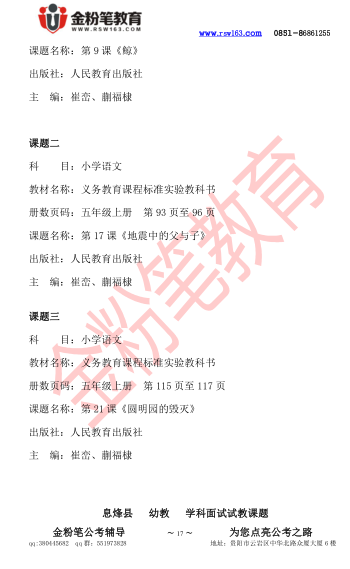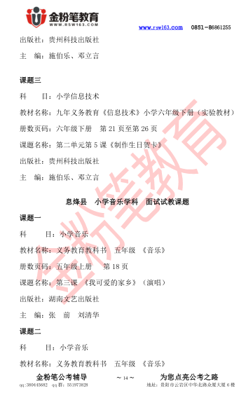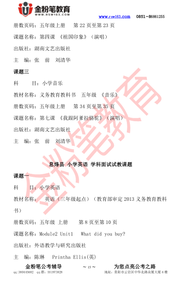 清镇市2015年春季公开招聘中小学幼儿园教师试教篇目