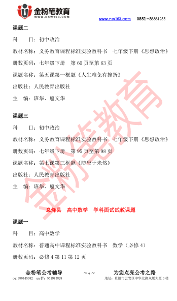 息烽县2015年春季公开招聘中小学、幼儿园试教题目