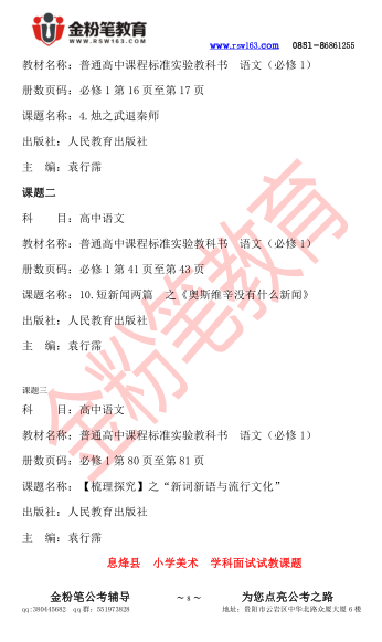 ▫ 2021年7月24日遵义市习水县事业单位(美术教师岗)招聘面试题目