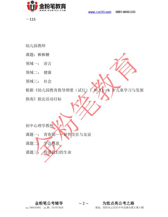 2015年云岩区公开招聘小学、幼儿园教师试教题目