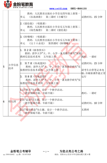 2015年云岩区公开招聘小学、幼儿园教师试教题目