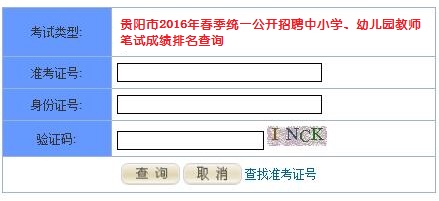 贵阳市2016年春季统一公开招聘中小学、幼儿园教师笔试成绩排名查询入口