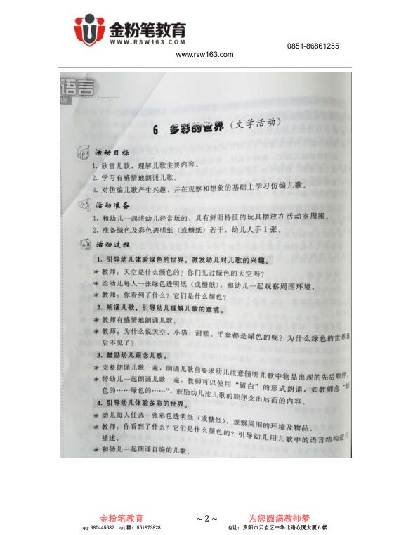 贵阳市2016年春季招聘教师开阳县试教幼题目