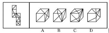 24、 左边给定的是纸盒的外表面,下面哪一项能由它折叠而成?( )