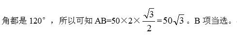 66.B。如图所示,可知跑500米后,距离出发点就是求AB的长度,正六边形内