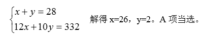 70.某餐厅设有可坐12人和可坐10人两种规格的餐桌共28张,最多可容纳332人同时就餐,问该餐厅有几张10人桌( )