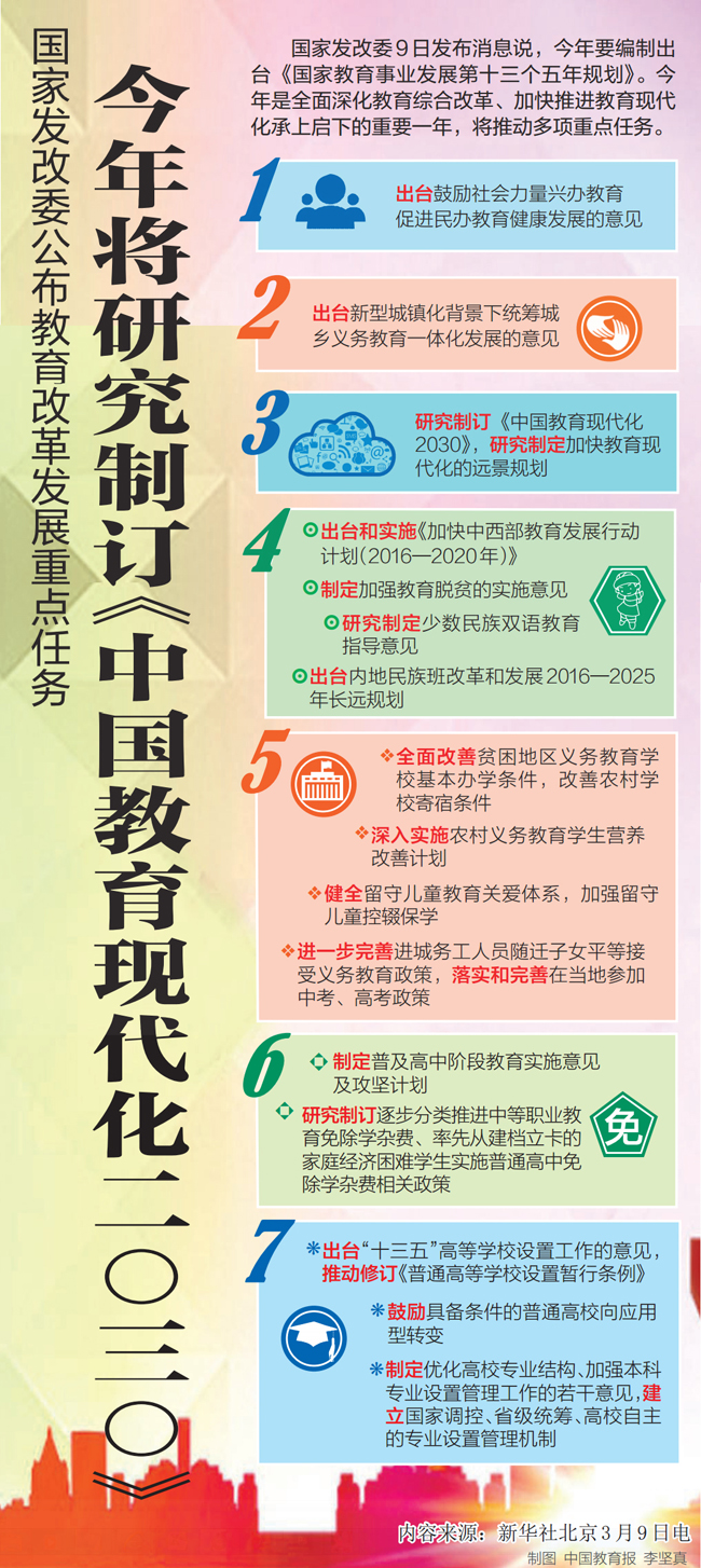 今年,2017年,国家发改委将要编制出台《国家教育事业发展第十三个五年规划》。以下是中国教育报整理的规划内容精要: