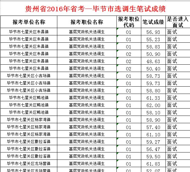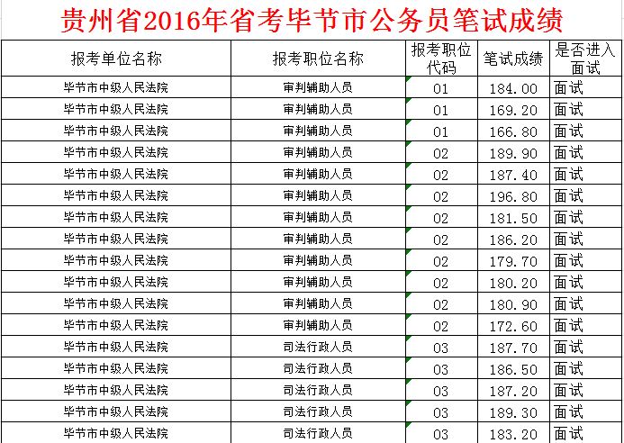 附件:贵州省2016年省考毕节市公务员笔试成绩.xlsx