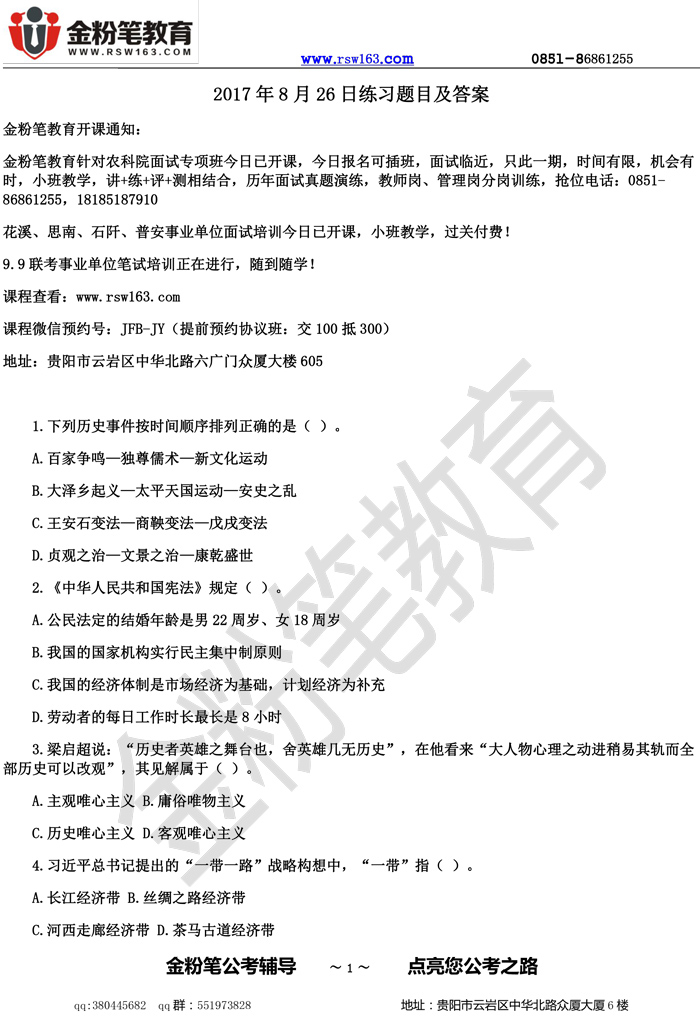 2017年贵州事业单位每日一练(8.26)