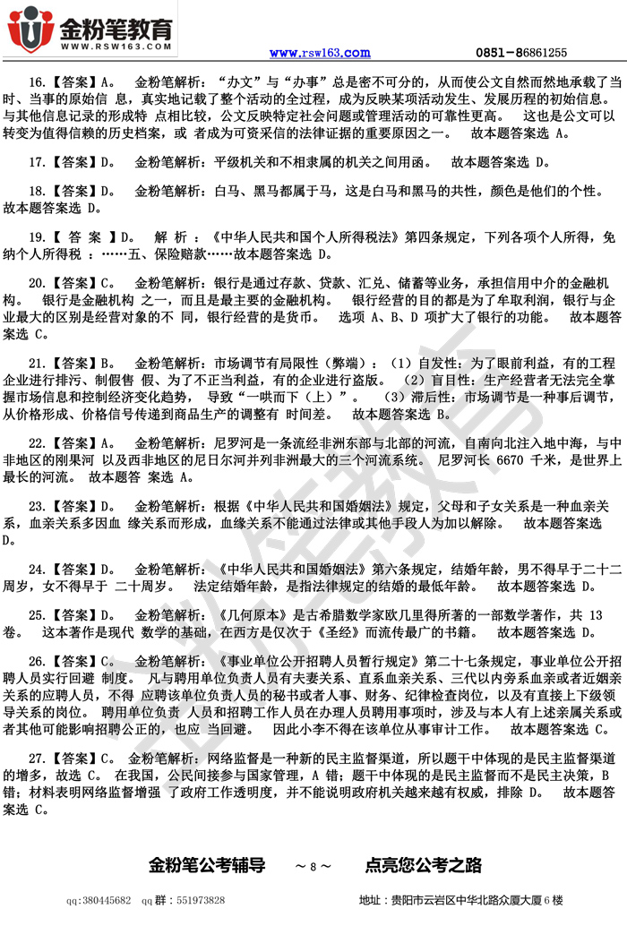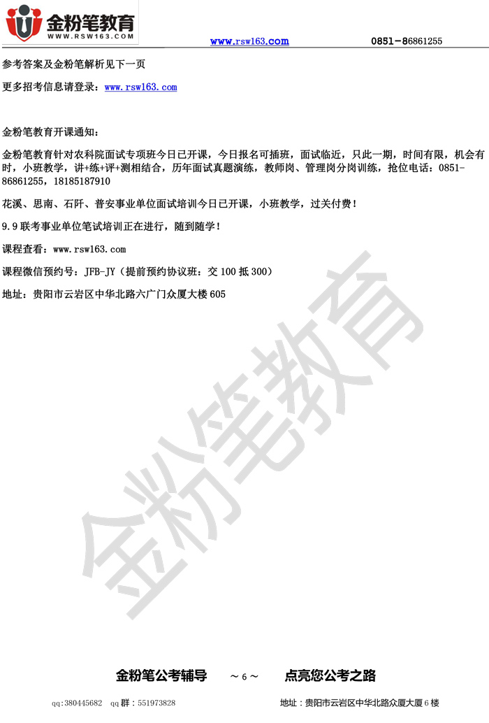【本文来源于网络,如有不当之处,请联系金粉笔教育反馈修改,或者进入贵州人事考试信息网进行查看】
