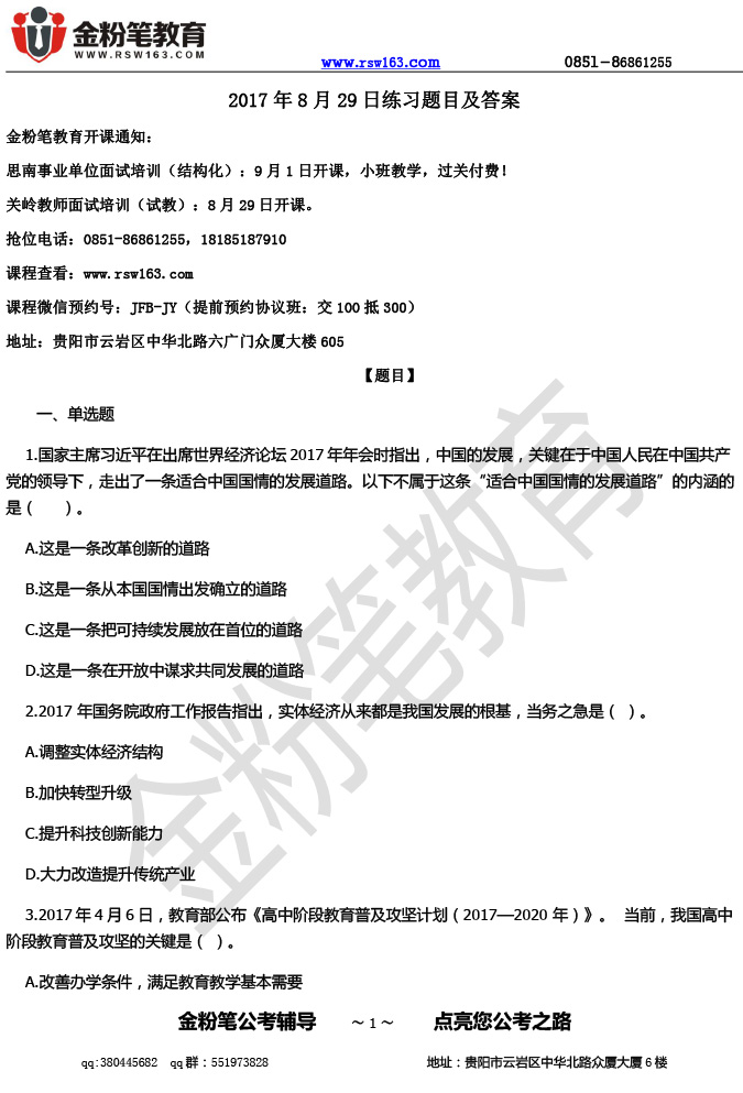 2017年贵州事业单位每日一练(8.30)