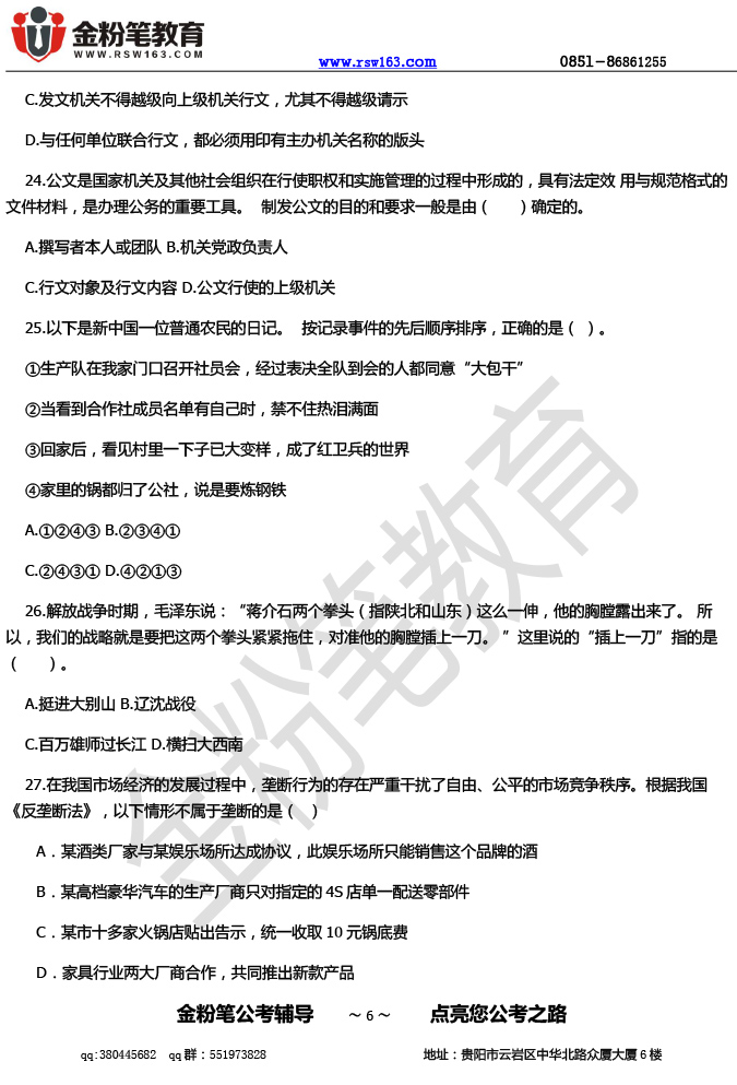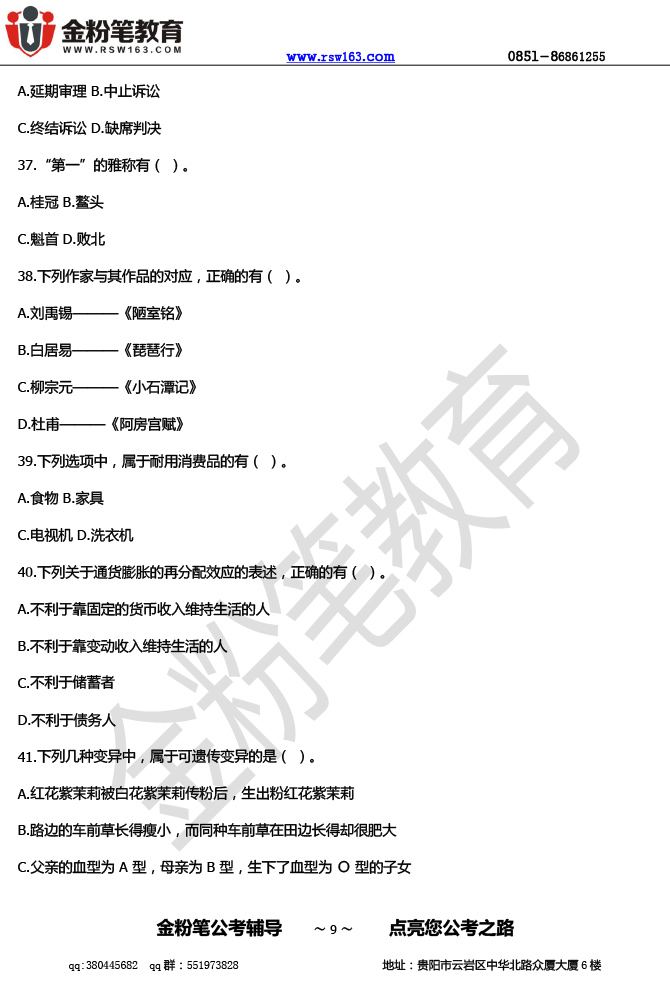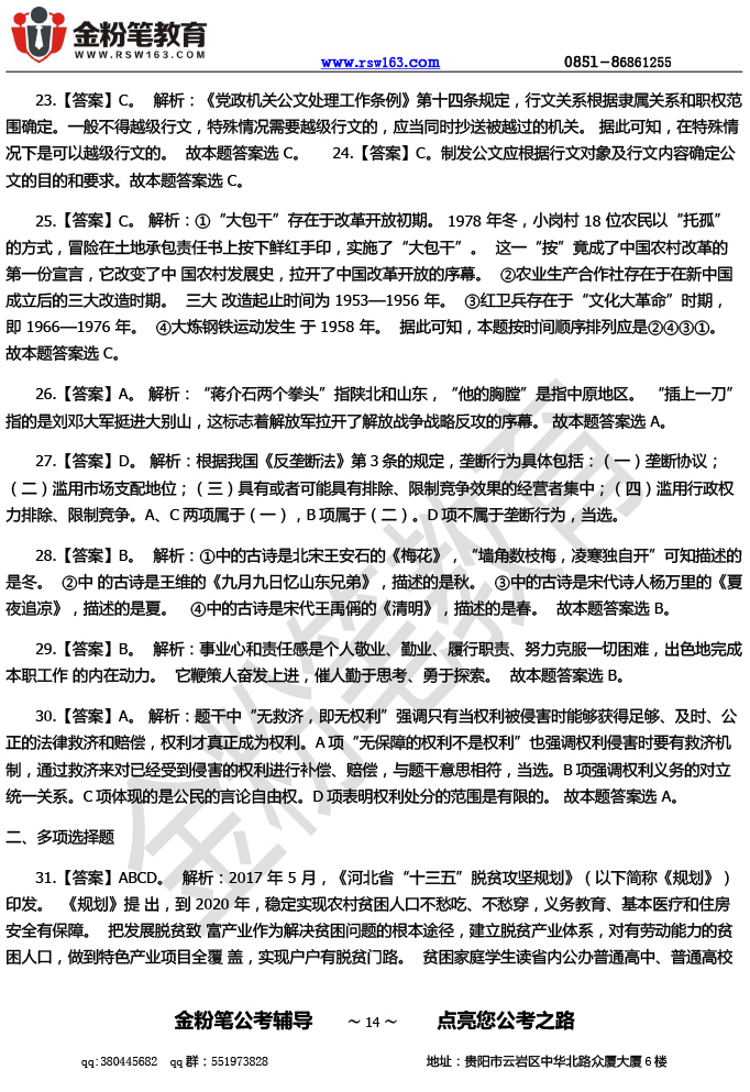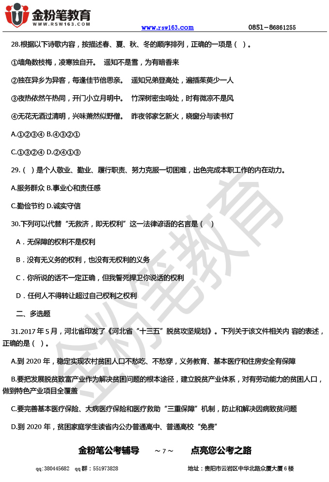 【本文来源于网络,如有不当之处,请联系金粉笔教育反馈修改,或者进入贵州人事考试信息网进行查看】