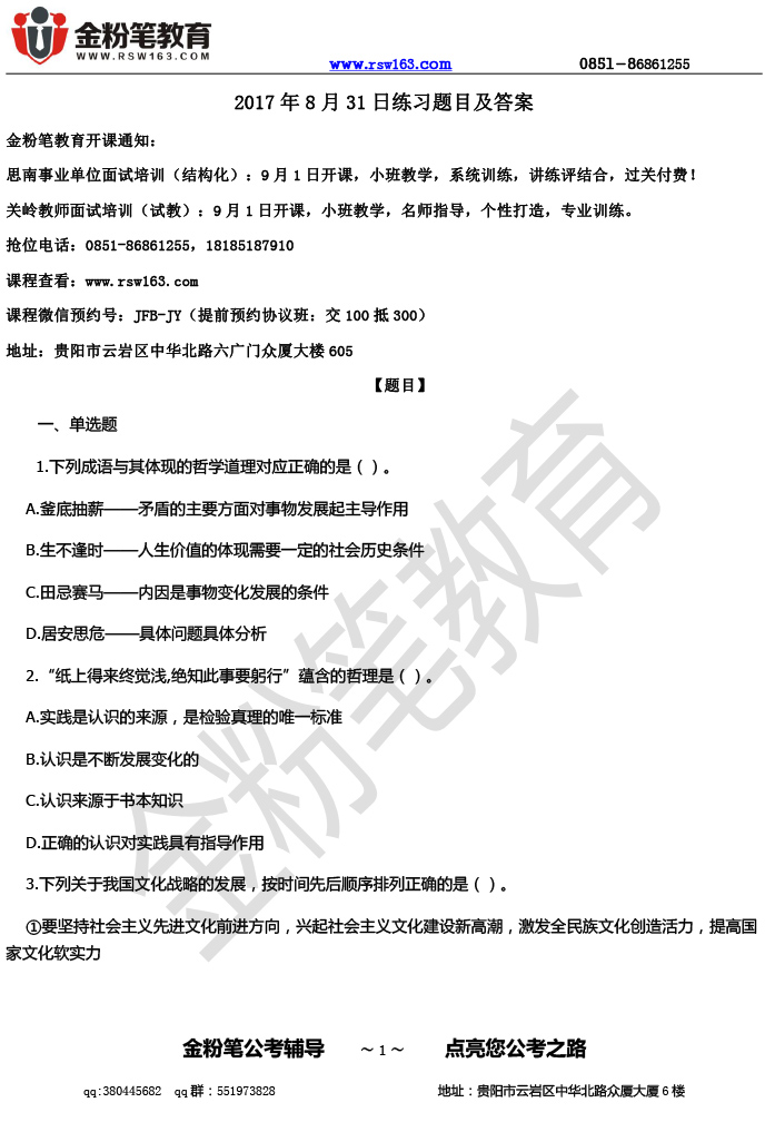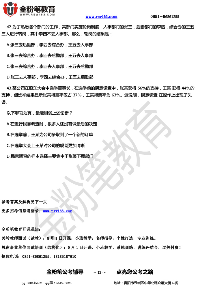 【本文来源于网络,如有不当之处,请联系金粉笔教育反馈修改,或者进入贵州人事考试信息网进行查看】