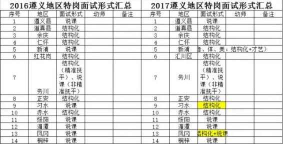 从图中可以看出遵义的地区的面试有变化,而对于其它地区的是统一考一种形式!