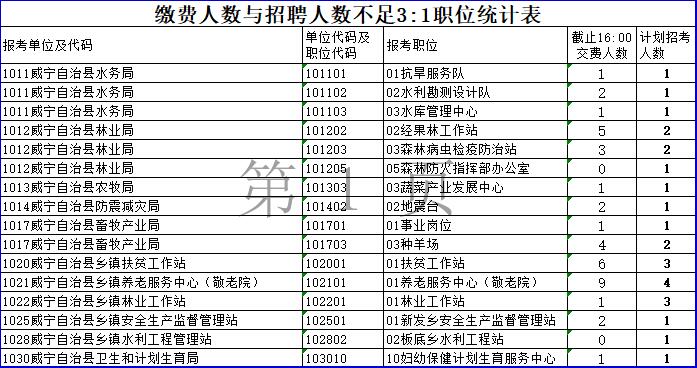 根据《威宁自治县2018年公开招聘事业单位工作人员简章》的规定,现将截止10月24日16:00缴费人数与招聘人数不足3:1职位予以公布。