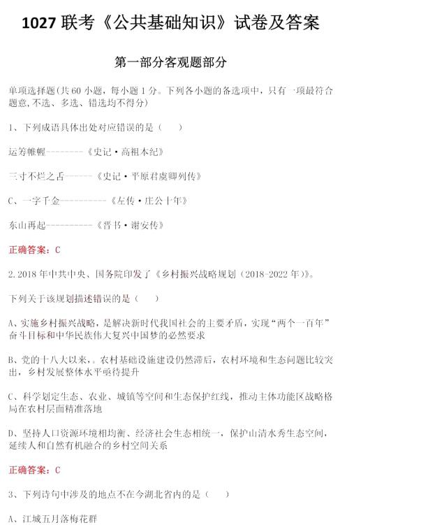 2018贵州10.27联考事业单位真题(考生回忆版《公基》)