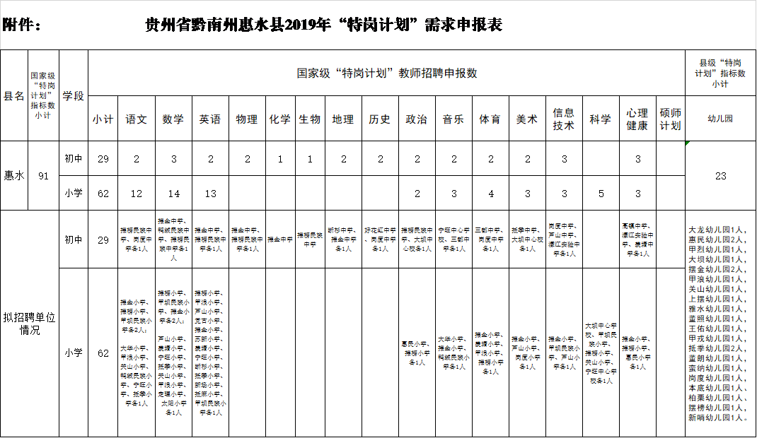 贵州省惠水县2019年“特岗计划”需求申报表