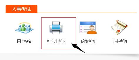 1、登录贵阳人力资源和社会保障网(http://rsj.guiyang.gov.cn/),即报名网站,在页面中部找到人事考试栏目,点击打印准考证,如图所示:
