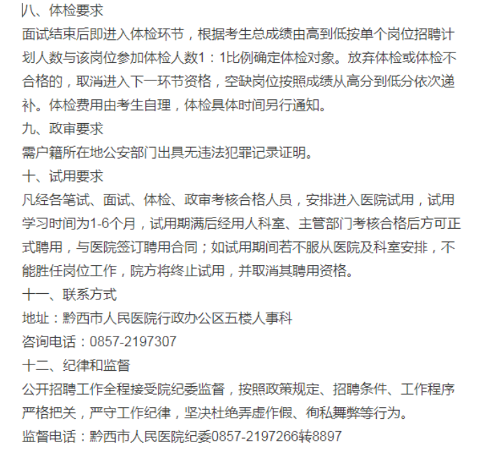 (六)考试等相关信息将在“黔西市人民医院”微信公众号进行公示,请考生密切关注。