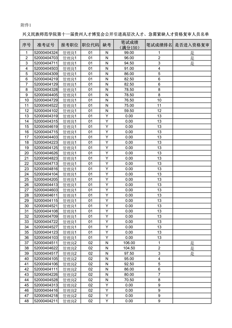 兴义民族师范学院第十一届贵州人才博览会公开引进高层次人才、急需紧缺人才资格复审人员名单