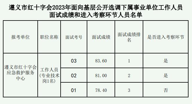 附件:遵义市红十字会2023年面向基层公开选调下属事业单位工作人员面试成绩和进入考察环节人员名单