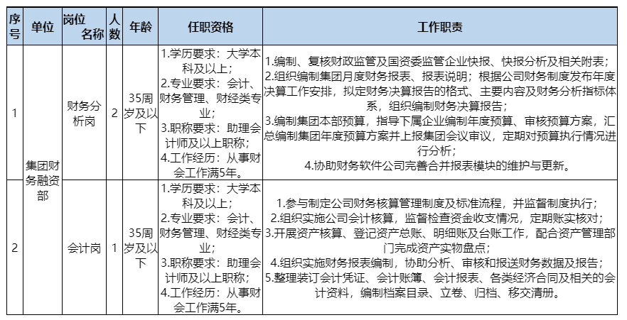 根据市交通运营集团财务工作需要,亟需面向社会公开招聘3名财务专业技术管理人员,现将相关信息公布如下:
