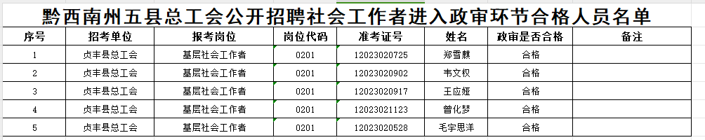 附:贞丰县总工会2023年面向社会公开招聘社会工作者体检政审结果的公告