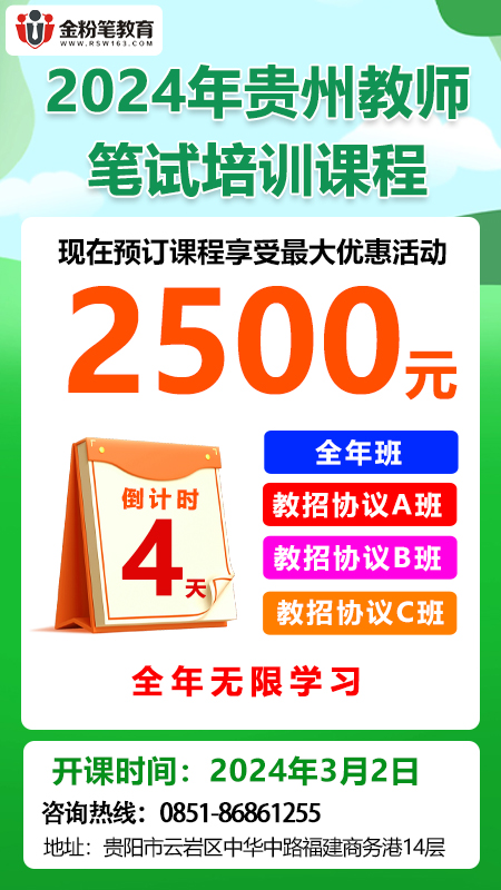2024年贵州教招笔试培训课程优惠2500元倒计时4天