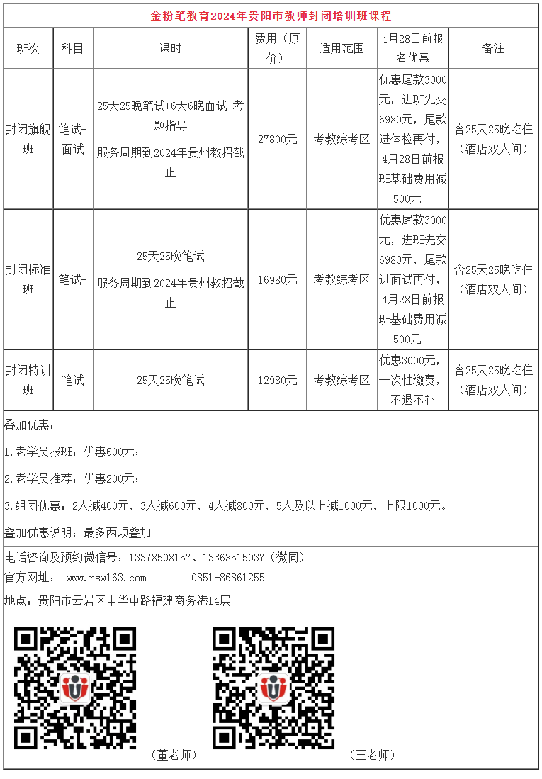 贵阳教师培训哪家好?贵阳教师培训班多少钱?贵阳教师培训多少天?贵阳教师笔试培训封闭班哪家机构好?2024年贵阳市教师招聘考试培训机构哪家好?金粉笔教育2024年贵阳市教师笔试培训封闭班来了,针对贵阳市教师考试科目进行培训,培训内容为《教育综合知识》,适用于贵阳地区教师考试培训,班次多样,课时适中,满足不同培训人群需求,培训时间及价格详见金粉笔教育2024年贵阳市教师考试培训封闭班课程。课程预定及咨询:13368515037(微同)。