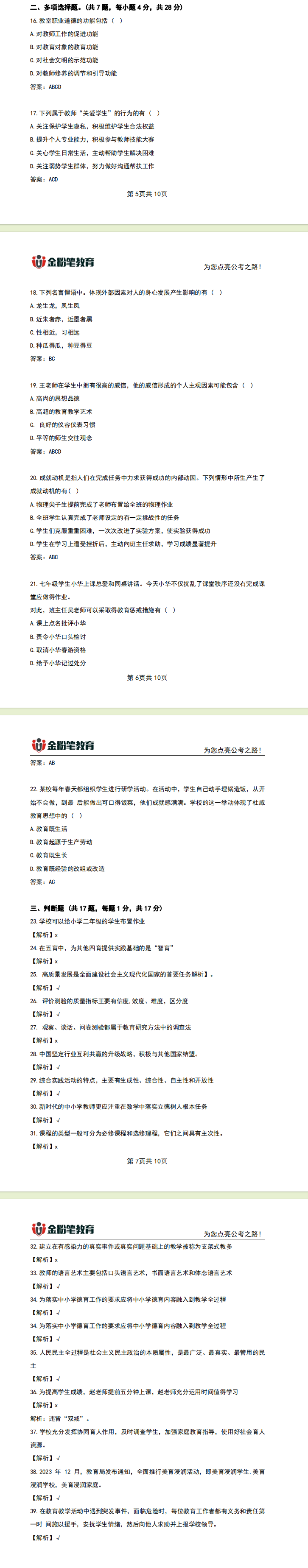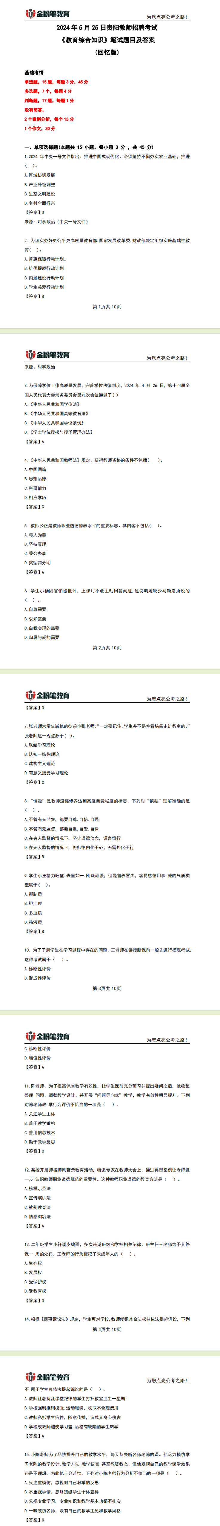 2024年5月25日贵阳教师招聘考试《教育综合知识》部分笔试题目及答案(回忆版)-金粉笔教育整理