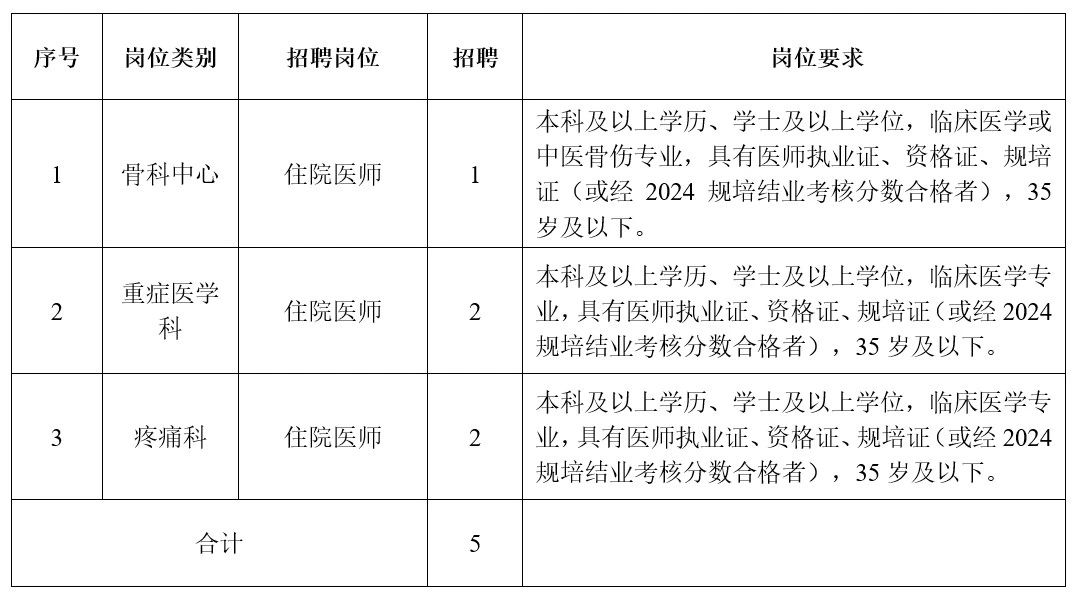 为加强医院人才队伍建设,根据学科发展需要,我院面向社会公开自主招聘编制外医务人员5名,现公告如下。