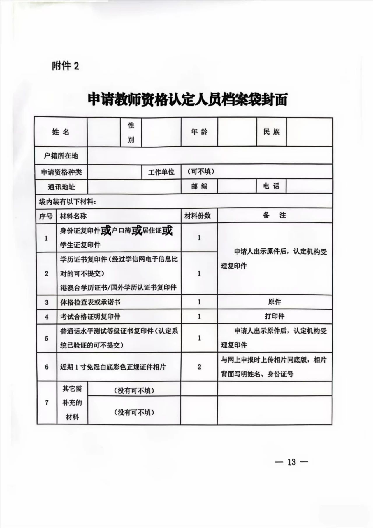 2.申请教师资格认定人员档案袋封面