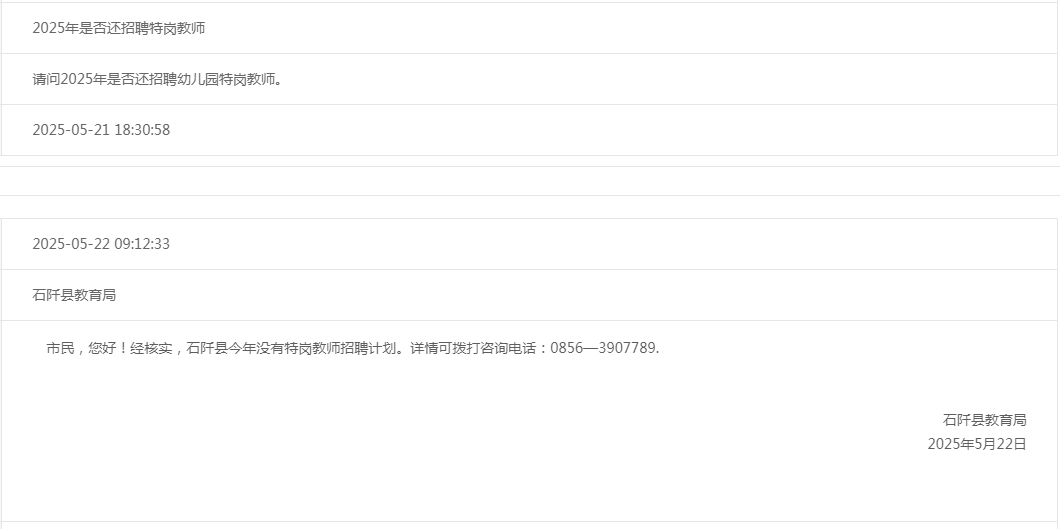 石阡县2025年无特岗教师招聘计划