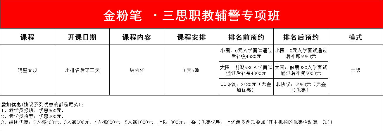 贵州金粉笔.三思职教2025年贵州辅警面试培训课程来了,培训结构化6天6晚,在开课前预约课程,可享课程活动优惠,辅警面试培训班预约或详情咨询:13368515037(微同)。