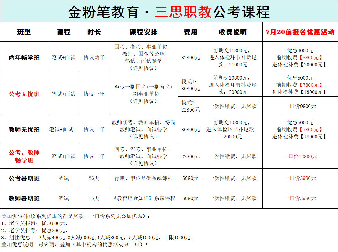 贵州金粉笔.三思职教2026年国考全年班课程来了,在7月20日前报班或预约,两年畅学班前期只需8800元,一年班畅学前期入学只需7800元,公考笔面畅学班一口价9800元,公考教师笔面试畅学班一口价12800元。全年班课程预约或咨询:13368515037(微同)。