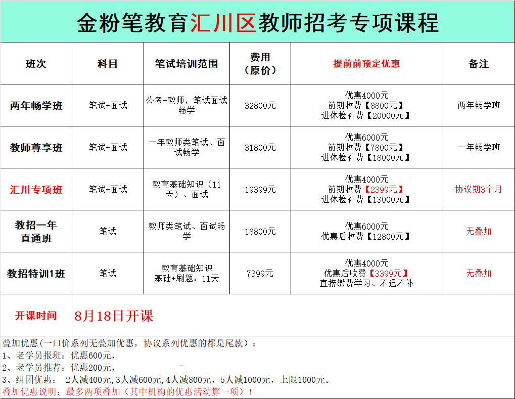 贵州金粉笔2025年遵义市汇川区教师笔试班课程来了,开课时间8月18日,现在报名只需2399元,8年以上教学经验师资主讲。遵义汇川区教师笔试班预约或咨询:13368515037(微同)。