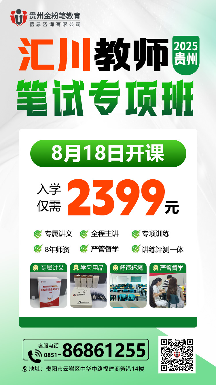 贵州金粉笔2025年遵义市汇川区教师笔试班课程来了,开课时间8月18日,现在报名只需2399元,8年以上教学经验师资主讲。遵义汇川区教师笔试班预约或咨询:13368515037(微同)。