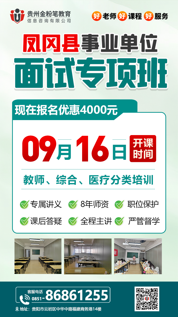贵州三思职教25年凤冈县事业单位面试班来了,第一期面试班9月16日开课,在开课前预约或报班可享相关课程优惠活动,凤冈县事业单位面试班预约及详情咨询:13368515037(微同)。