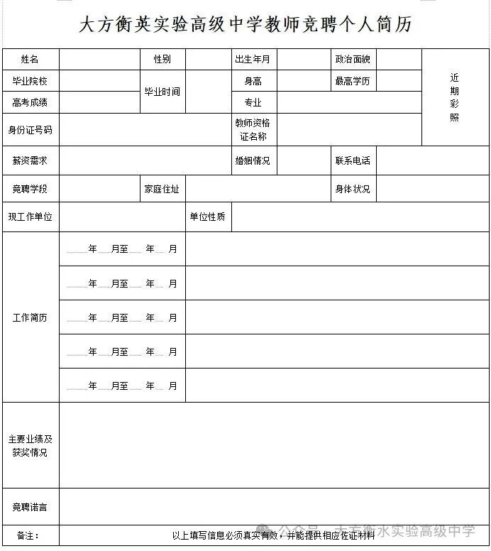 3.教师工作简历,佐证材料必须真实有效,若出现弄虚作假情况,一经查实一律取消应聘资格。