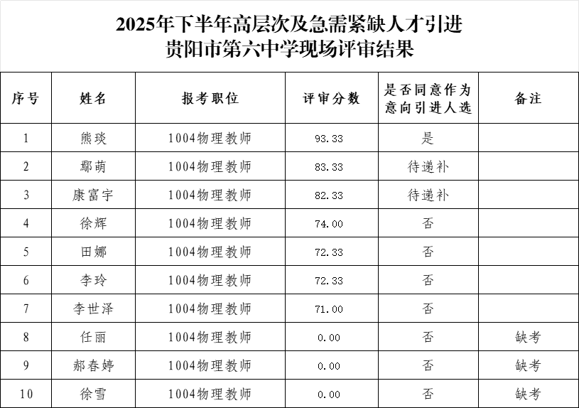 根据贵阳市教育系统2025年下半年引进高层次及急需紧缺人才工作安排,我校2025年下半年人才引进教师岗位现场评审工作已完成。经报市教育局审定、市人社局备案,现将我校2025年下半年高层次及急需紧缺人才引进现场评审结果公告如下:
