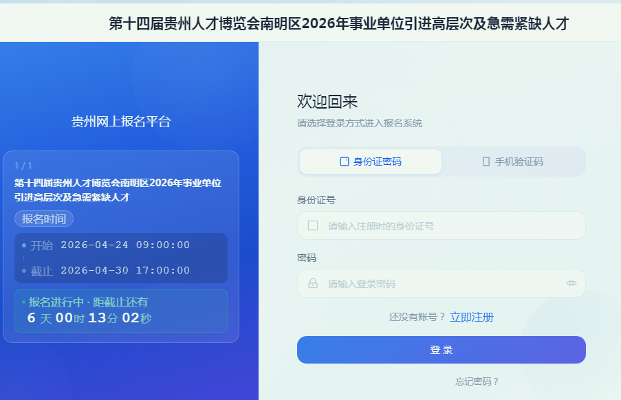 第十四届贵州人才博览会南明区2026年事业单位引进高层次及急需紧缺人才314人报名入口(4.24-4.30)