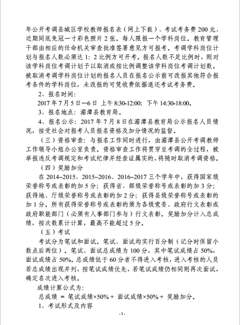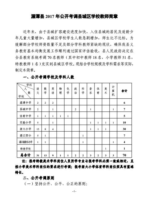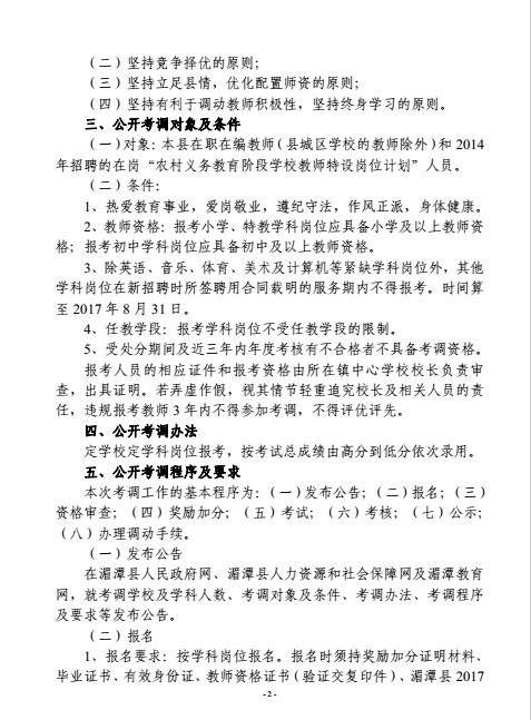 湄潭县2017年公开考调县城区学校教师简章(70名,7月5-6日现场报名)