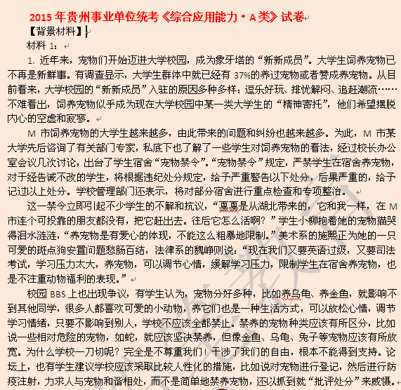 贵州省事业单位考试《综合应用能力A类》真题