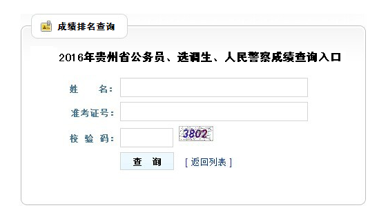 2016年贵州省公务员、选调生、人民警察成绩排名查询入口