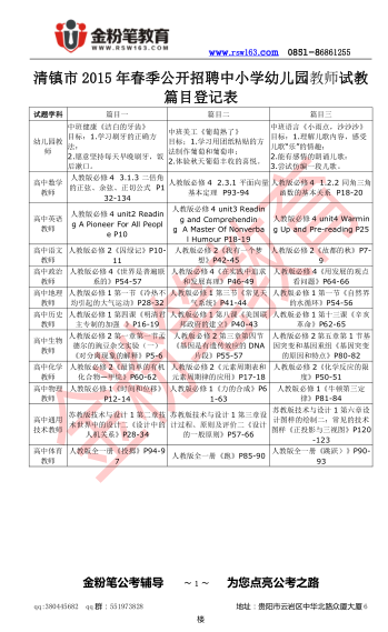 清镇市2015年春季公开招聘中小学幼儿园教师试教篇目