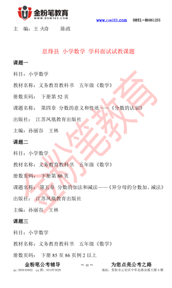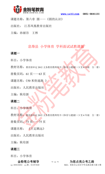 息烽县2015年春季公开招聘中小学、幼儿园试教题目