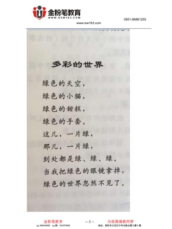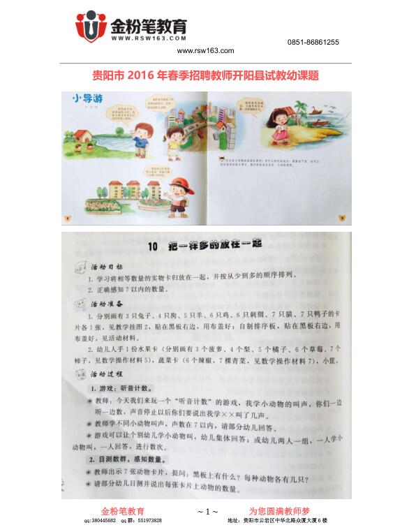 贵阳市2016年春季招聘教师开阳县试教幼题目